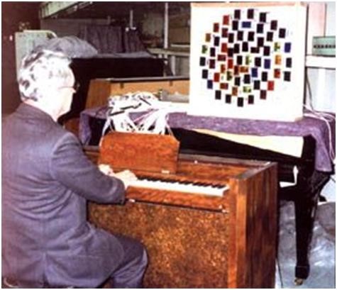 Le compositeur et virtuose Alexandre Scriabine présente en 1911 une œuvre dédiée à la correspondance son/couleur. Dans le spectacle Prométhée ou Le poème du Feu, la scène est animée par l’intermédiaire d’un clavier dont chaque touche est reliée à une lampe projetant une couleur correspondante. Les couleurs se succèdent selon des lois définies par l’évolution narrative souhaitée par le compositeur. « Scriabine a effectué une synthèse de ses connaissances, tant philosophiques, religieuses, qu’artistiques. Il a cherché à exprimer ces liens entre les arts, manifestés simultanément, permettant à l’homme de rejoindre le cosmos et aux compositeurs, d’atteindre l’Extase. » (Françoise Roy-Gerboud, La Musique comme Art total au XXème siècle, page 132).